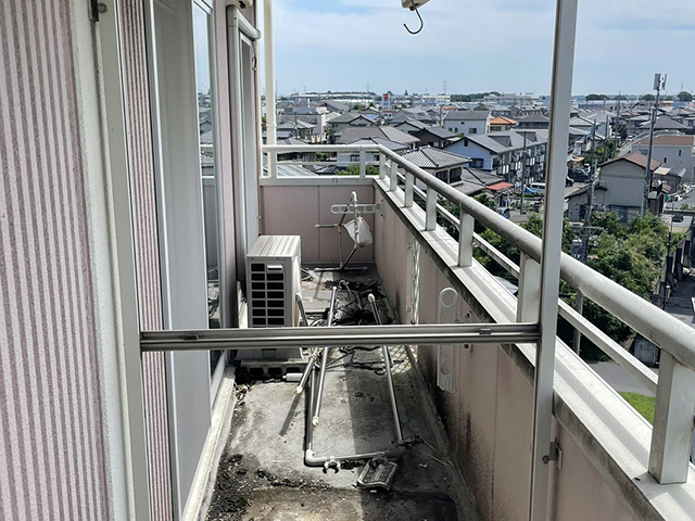 バルコニーやベランダもその対象となり、ゴミや放置物の撤去はもちろん、壁面や床面の黒ずみ・カビの除去、高圧洗浄や手作業による細部清掃など、徹底したクリーニングを行います。