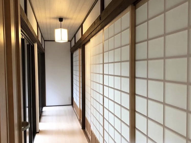 内部では、特に傷みが目立っていた廊下の天井・壁・床を全面的に改修。明るく清潔感のある白木のフローリングや障子を取り入れることで、和の趣を大切にしながらも現代的な「和モダン」空間に生まれ変わりました。