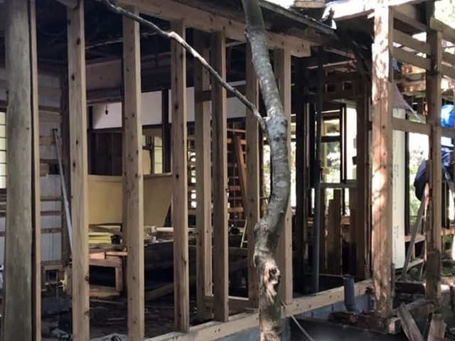 N邸のリフォームでは、経年劣化により傷んでいた外壁や戸板、雨樋などをすべて撤去し、美しい無垢材の外壁と現代的なアルミサッシ窓に一新されました。縁側の床も張り替えられ、採光性と気密性が大きく向上し、より快適な住空間が実現しています。